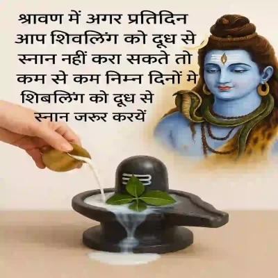 श्रावण में अगर प्रतिदिन आप शिवलिङ्ग को दूध से स्नान नहीं करा सकते तो कम से कम निम्न दिनों में शिवलिङ्ग को दूध से स्नान जरूर करायें
